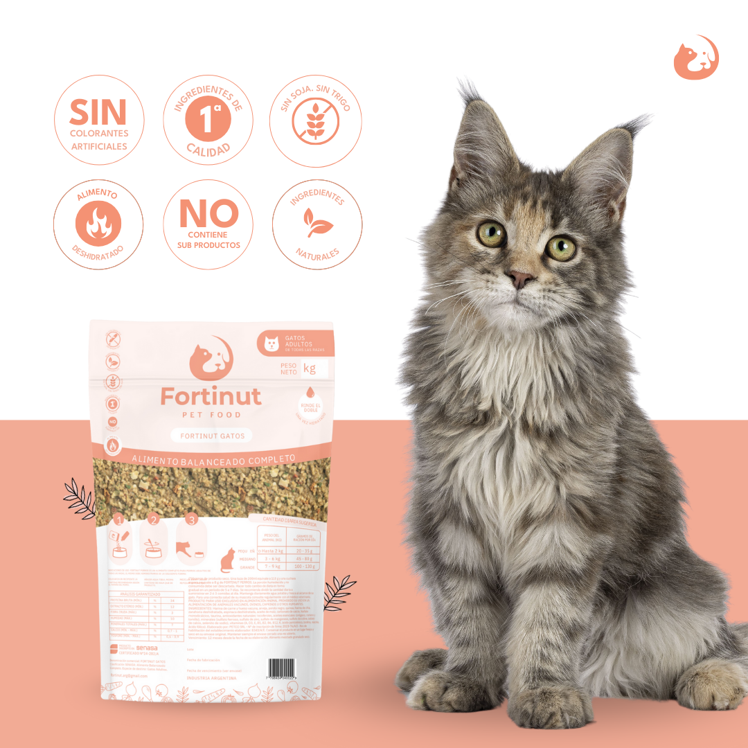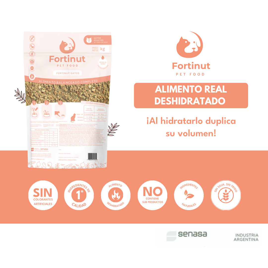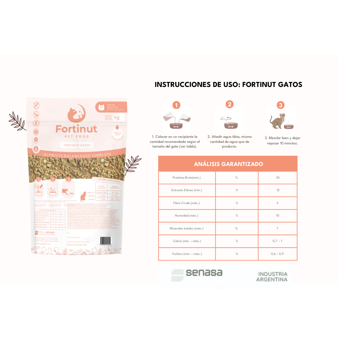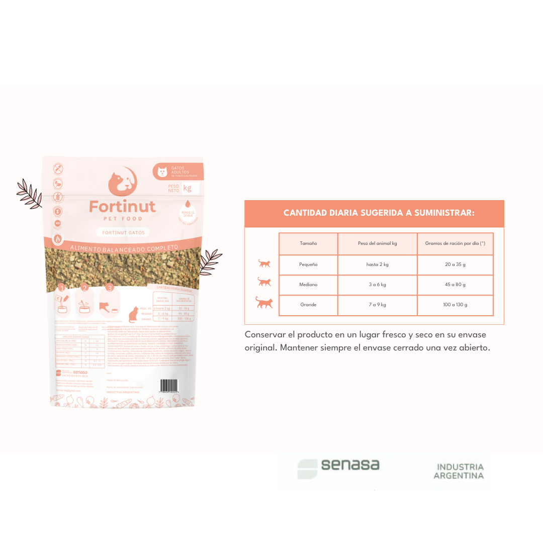 (*) Gramos de producto seco. Una taza de 200 ml equivale a 115 g y una cuchara sopera equivale a 8 g de FORTINUT GATOS.